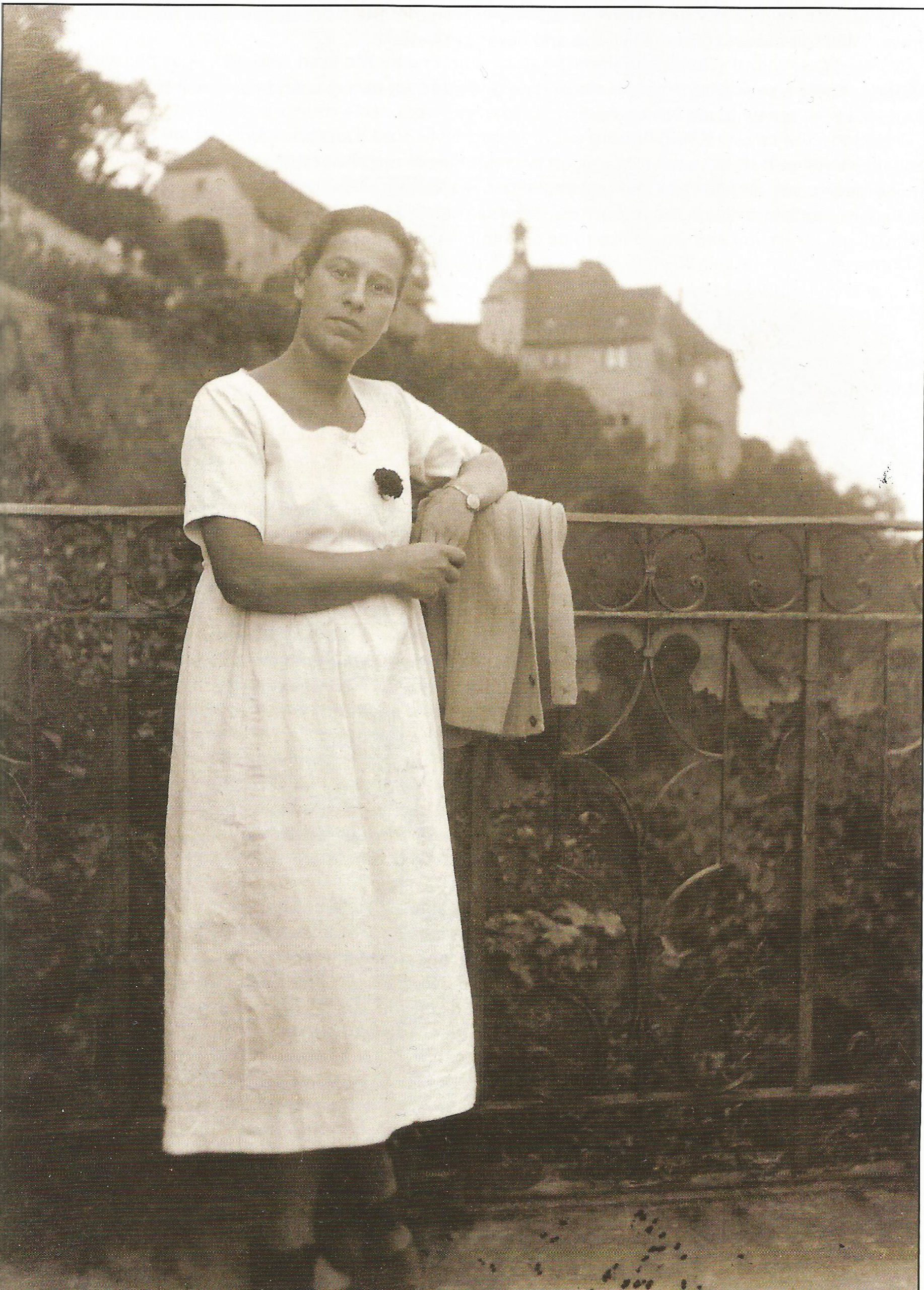 - Marguerite Friedlaender vor dem Dornburger Schloss, Pfingsten 1925