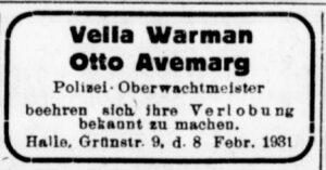 Mitte Dezember 1938 verließen Frieda und Otto Avemarg Halle.