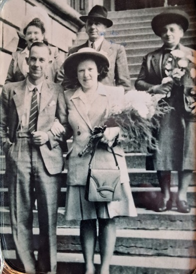 - Hochzeit von Ellinor und William Godderidge, im Hintergrund Gertrud und Helene Warmann