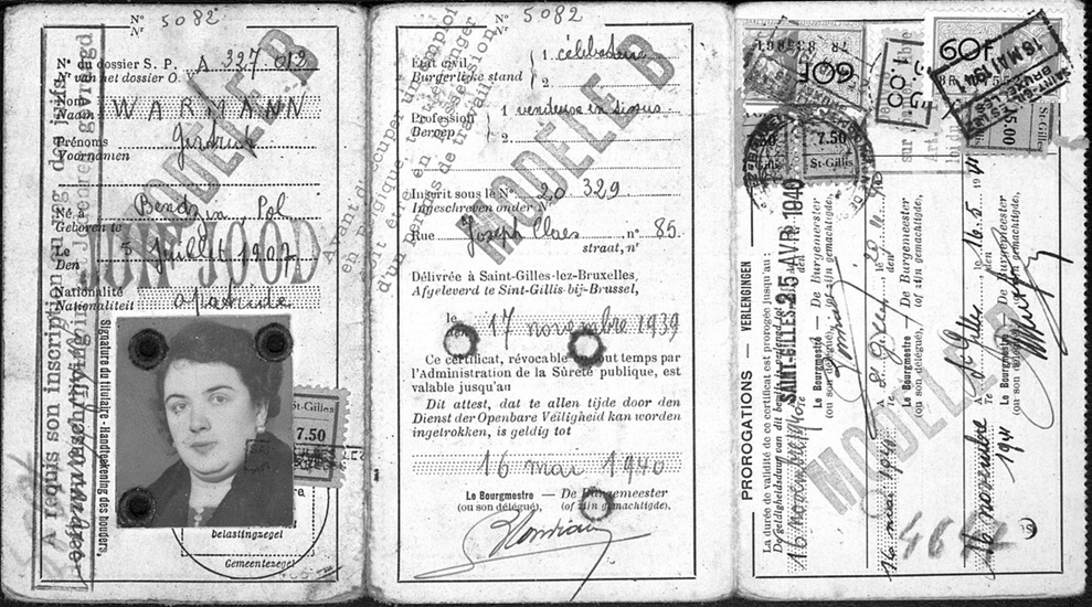 Familie Avemarg hatte nun wieder ein regelmäßiges Einkommen. Frau Avemarg, ihre Schwester und ihre Mutter waren jedoch als staatenlose Juden den durch die deutschen Behörden verhängten rigorosen antijüdischen Regelungen unterworfen, die ein normales Leben unmöglich machten. In ihren Ausweiskarten prangte der zweisprachige rote Stempel JUIF JOOD (Jude).