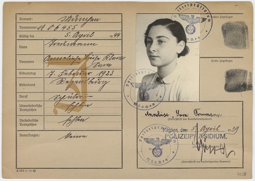 - Kennkarte von Anneliese Treumann 1939 (Stadtarchiv München)