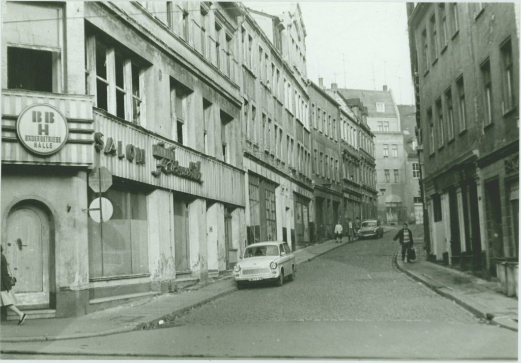 - Blick von der Geiststraße in die Neumarktstraße1975, Foto: Stadtarchiv Halle (Saale)