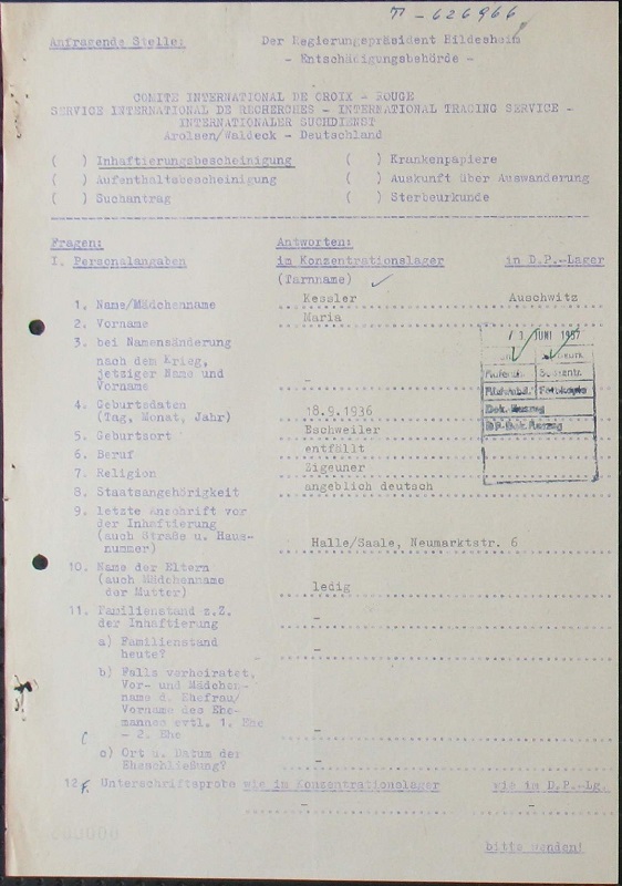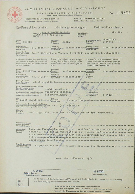 Deportiert/ermordet im „Zigeunerlager Auschwitz-Birkenau”