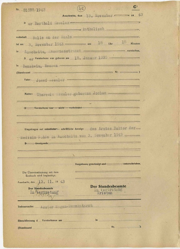 Am Montag, den 27. Dezember 1943 Josef Kessler, 28 Jahre alt.