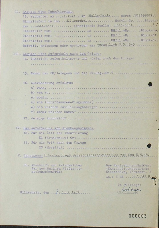 „Hauptbuch des Zigeunerlagers“, Auschwitz