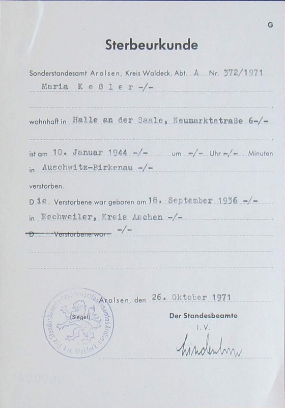Überlebt hat Therese Kessler, 32 Jahre, sie ist 2002 in Offenbach/Main verstorben.